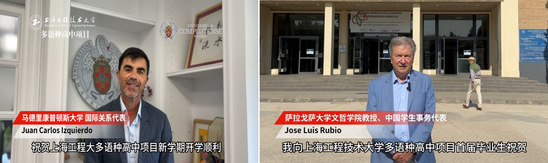 多语种高中项目负责人叶宇宏老师为新生送上寄语。合作院校代表也纷纷送上开学祝福,包括日本千叶科学大学副校长竹山哲二、马德里康普顿斯大学国际关系代表Juan Carlos Izquierdo、萨拉戈萨大学文哲学院教授兼中国学生事务代表Jose Luis Rubio等。多语种高中项目教师代表与优秀学生代表、新生代表先后发言,分享教学理念与学习经验。