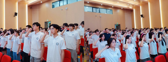 全体学生进行了宣誓,立志成为恪守“信任、尊重、独立、合作、善意”宗旨、兼具文化自信与国际视野、笃学善思、奋发向上的新时代学子。